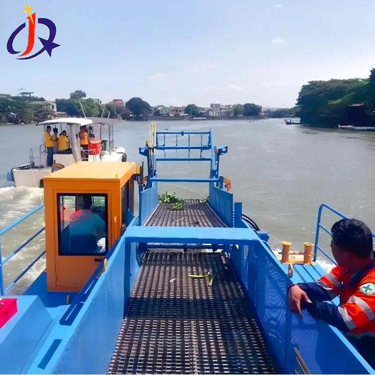 ក្រុមហ៊ុន Qingzhou Jinqi Mining Machinery Co., Ltd. ផលិតទូកកាត់ស្មៅក្នុងទឹកសម្រាប់ការបូមខ្សាច់តាមដងទន្លេ ដែលជាឧបករណ៍គ្រប់គ្រងទឹកទំនើបដែលត្រូវបានរចនាឡើងដើម្បីដោះស្រាយបញ្ហានៃការលូតលាស់ស្មៅក្នុងទឹកច្រើនពេក និងការប្រមូលផ្តុំដីល្បាប់នៅក្នុងទន្លេ។